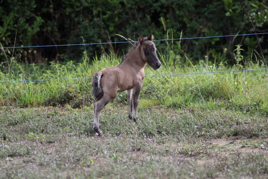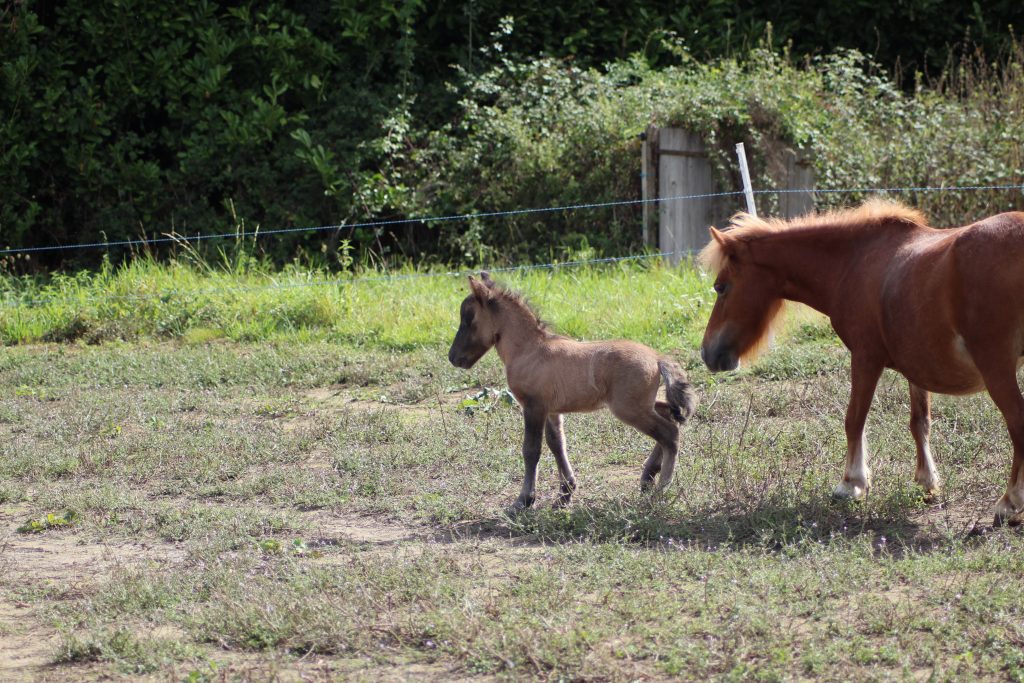Femelle miniature (CMF) née le 9 juillet 2025, robe champagne ambre