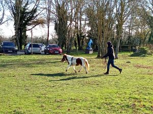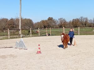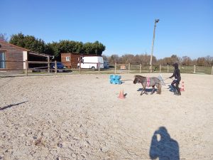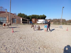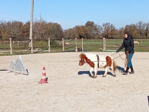 Cela permet aux nouveaux propriétaires d’être encadrés s’ils le souhaitent pour les apprentissages de leur mini et à d’autres de pouvoir découvrir le travail du cheval autrement qu’en montant !