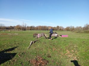 Depuis maintenant plus de 6 ans (déjà !) nous organisons 2 séances de travail par mois ouvertes aux propriétaires de minis et quelques non propriétaires qui prennent mes chevaux : au programme trec, obstacle, longues rênes et même attelage quand l’effectif le permet !